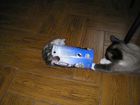 jako vždy mají radost z papírových krabiček a tahle jim slouží i jako tunel